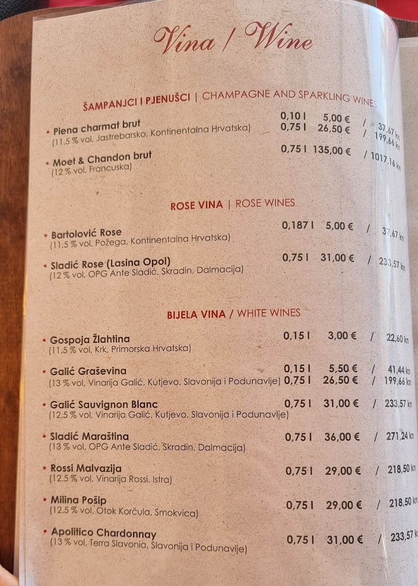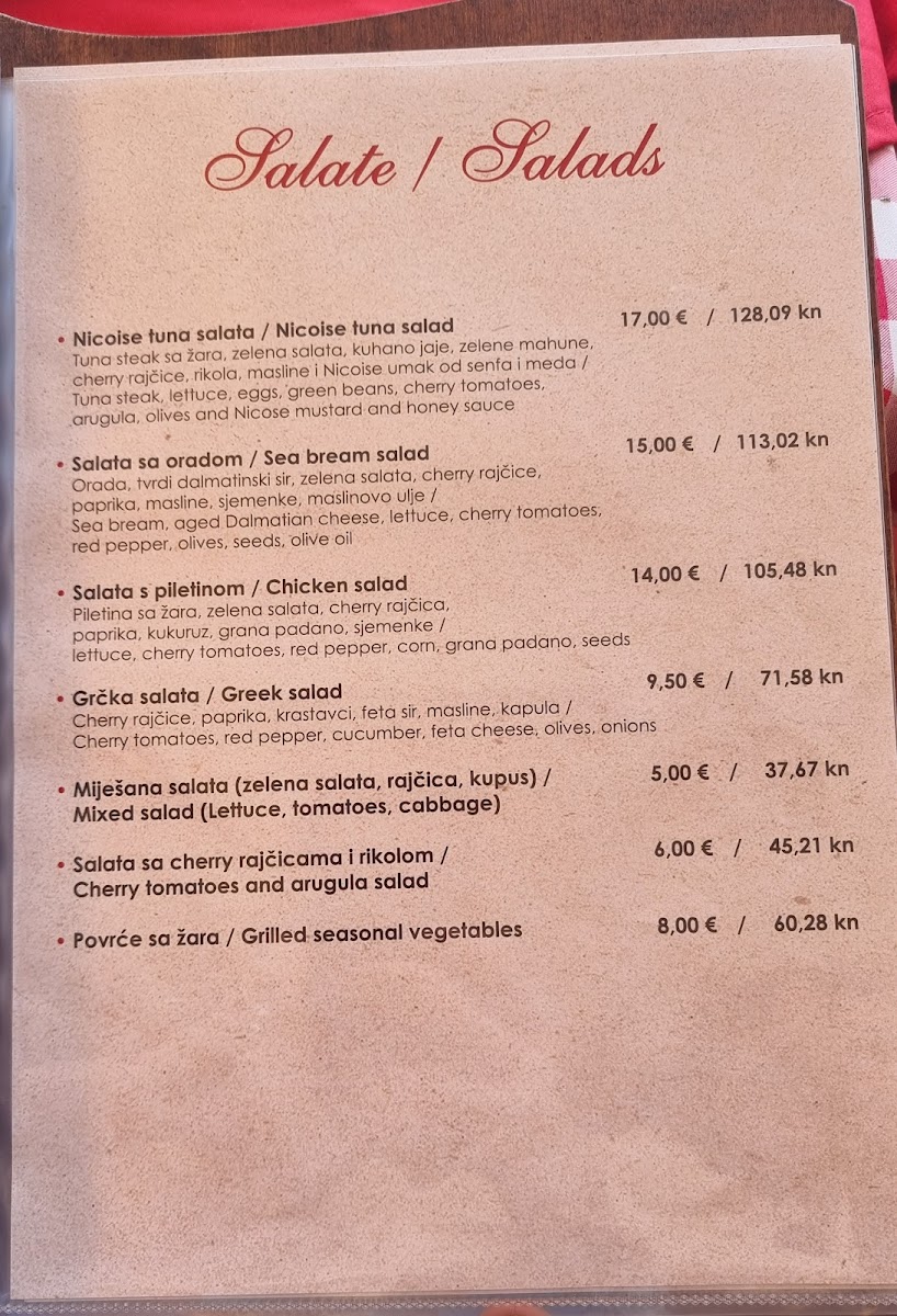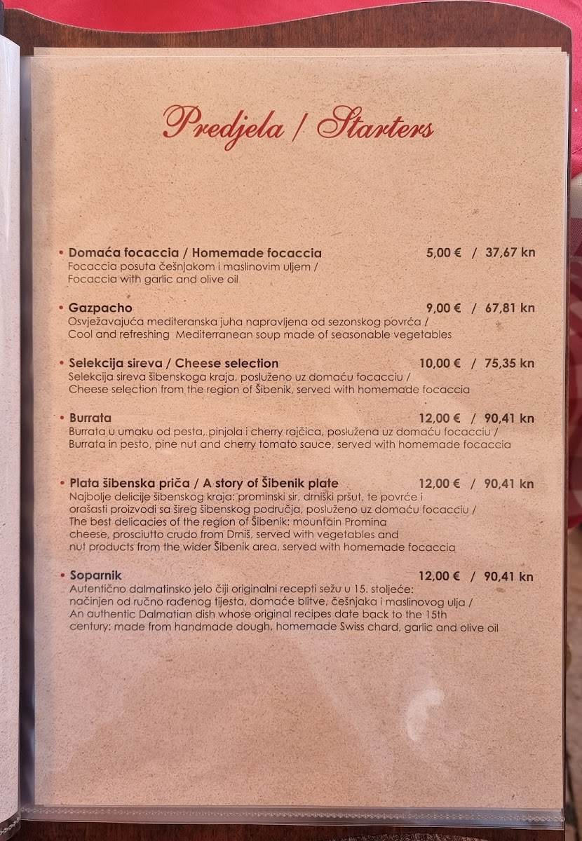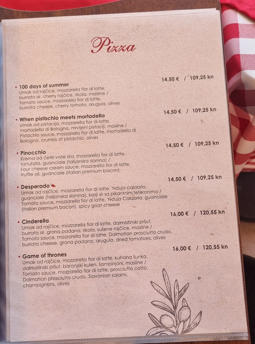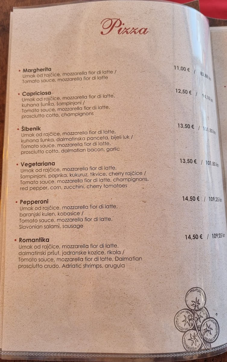 Argola Sibenik Restaurant - Pizzeria Menu